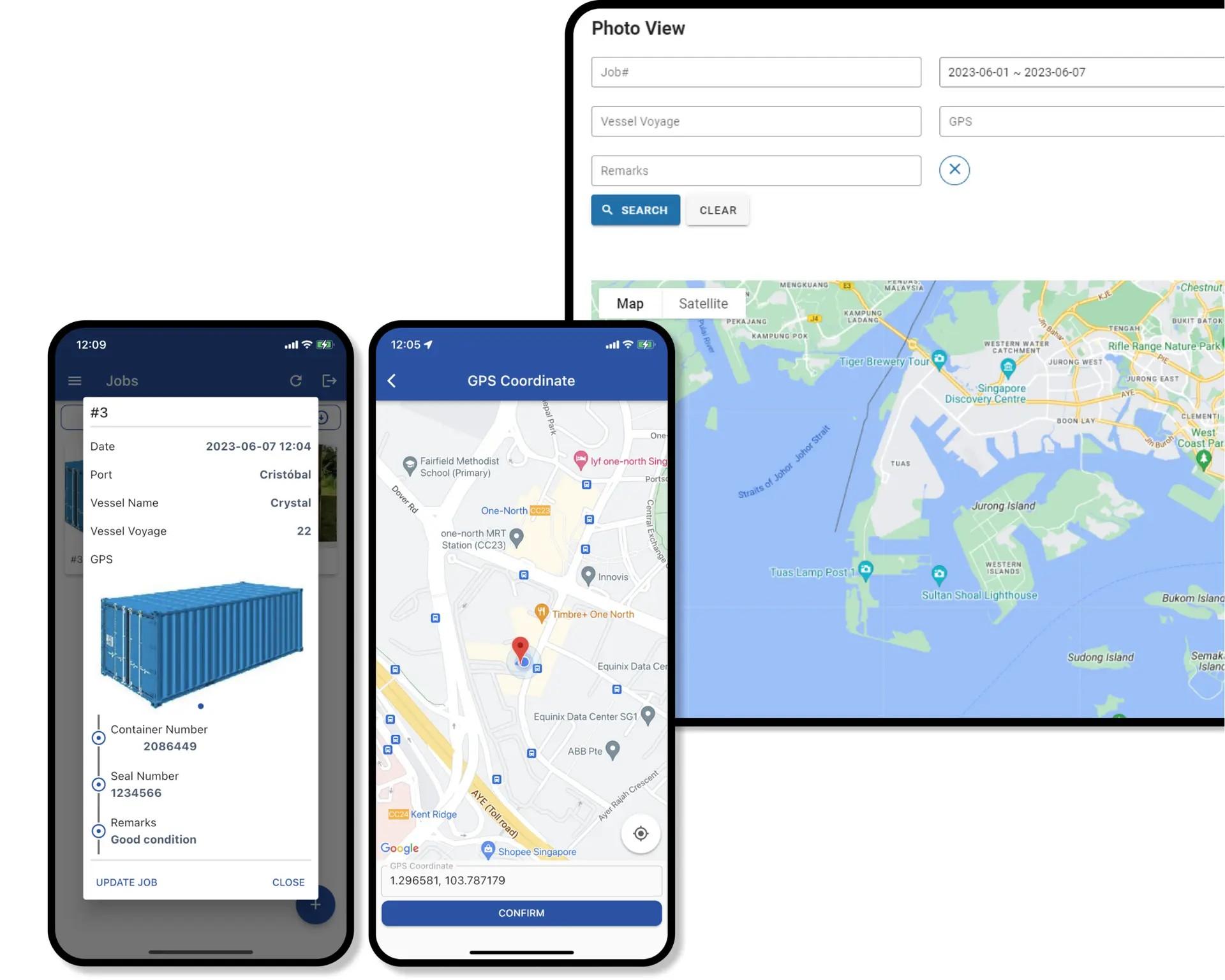 CargoNoteで案件を選んだら、アプリの指示通りに点検作業を実行、写真や情報の入力を実施。